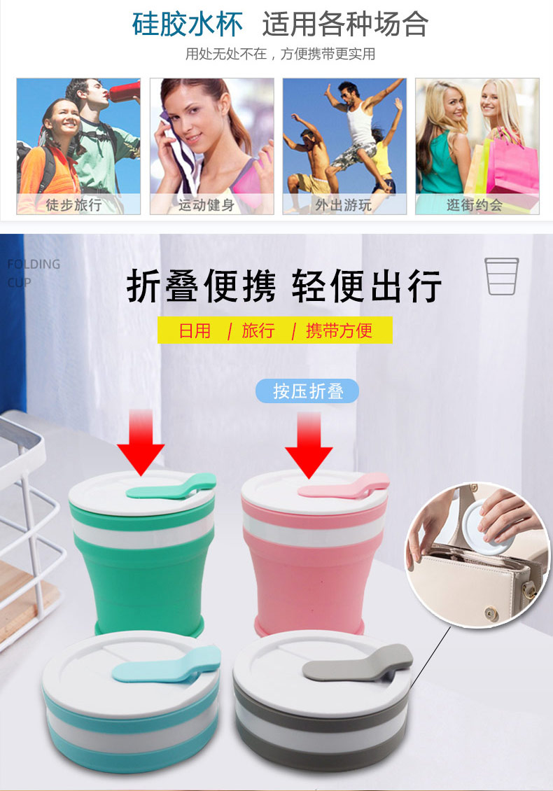 折疊式硅膠水杯成為運(yùn)動(dòng)以及郊游的便攜物品之一,水喝完后直接折疊放入口袋減小儲(chǔ)物空間替代了對(duì)水壺和瓶裝礦泉水的不足, 完全顛覆了消費(fèi)者對(duì)硅膠折疊水杯的看法,硅膠折疊杯是一種攜帶方便、使用衛(wèi)生、具有雙層杯壁的折疊杯。外壁的兩個(gè)相鄰段通過(guò)螺紋連接,內(nèi)壁的兩個(gè)相鄰段為錐形配合,可上下移動(dòng)。通過(guò)外壁螺紋旋轉(zhuǎn)驅(qū)動(dòng)內(nèi)壁上下展開(kāi),實(shí)現(xiàn)杯形折疊和拉伸動(dòng)能。