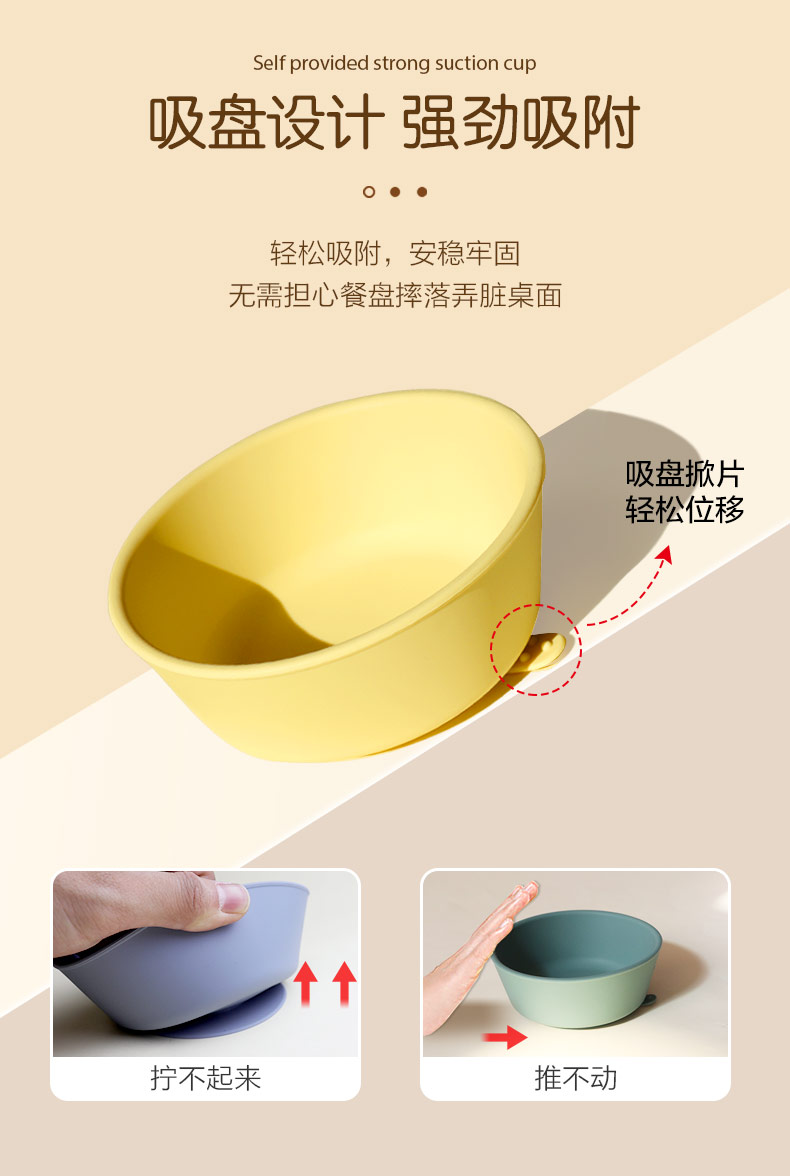 新款兒童硅膠碗 寶寶輔食吸盤(pán)碗 母嬰兒童餐具硅膠餐盤(pán)