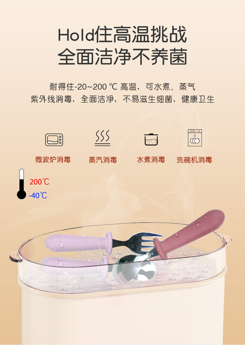 兒童不銹鋼餐勺 硅膠手柄寶寶吃飯短柄叉勺 寶寶叉勺套裝餐具