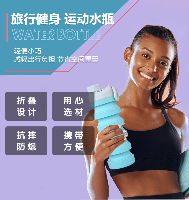用途:食品級材質(zhì),不含BPA,可伸縮折疊,不占空間,抗摔 耐壓,耐熱抗冷,多色可選,時尚健康